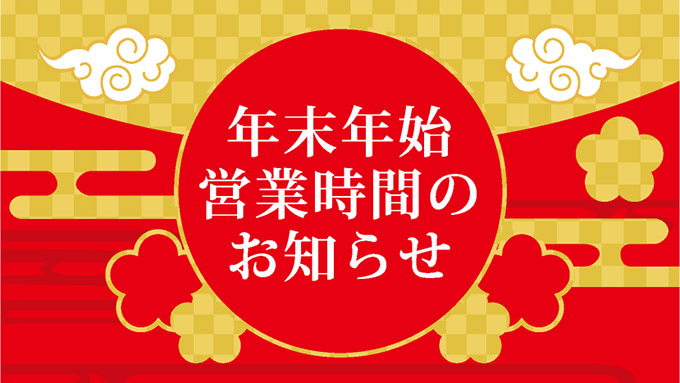 12月31日、1月1日休業、1月2日~1月4日は16:00~23:00